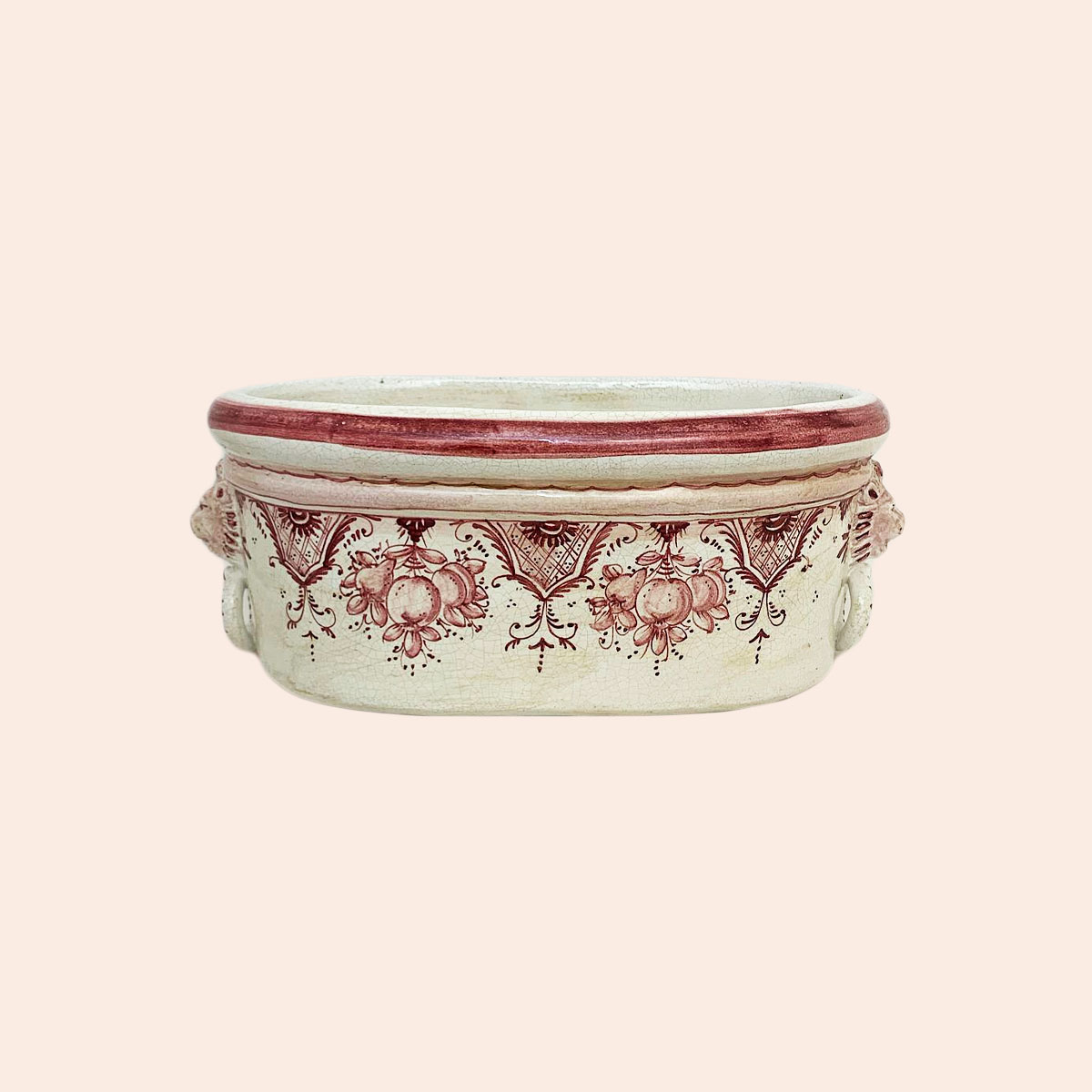 Oval flower planter, ringed handles. Scroll the menu next to the photo to choose your size. iIN THE PHOTOS: OVAL FLOWER HOLDER CM.55L AND OVAL FLOWER HOLDER CM.37L.