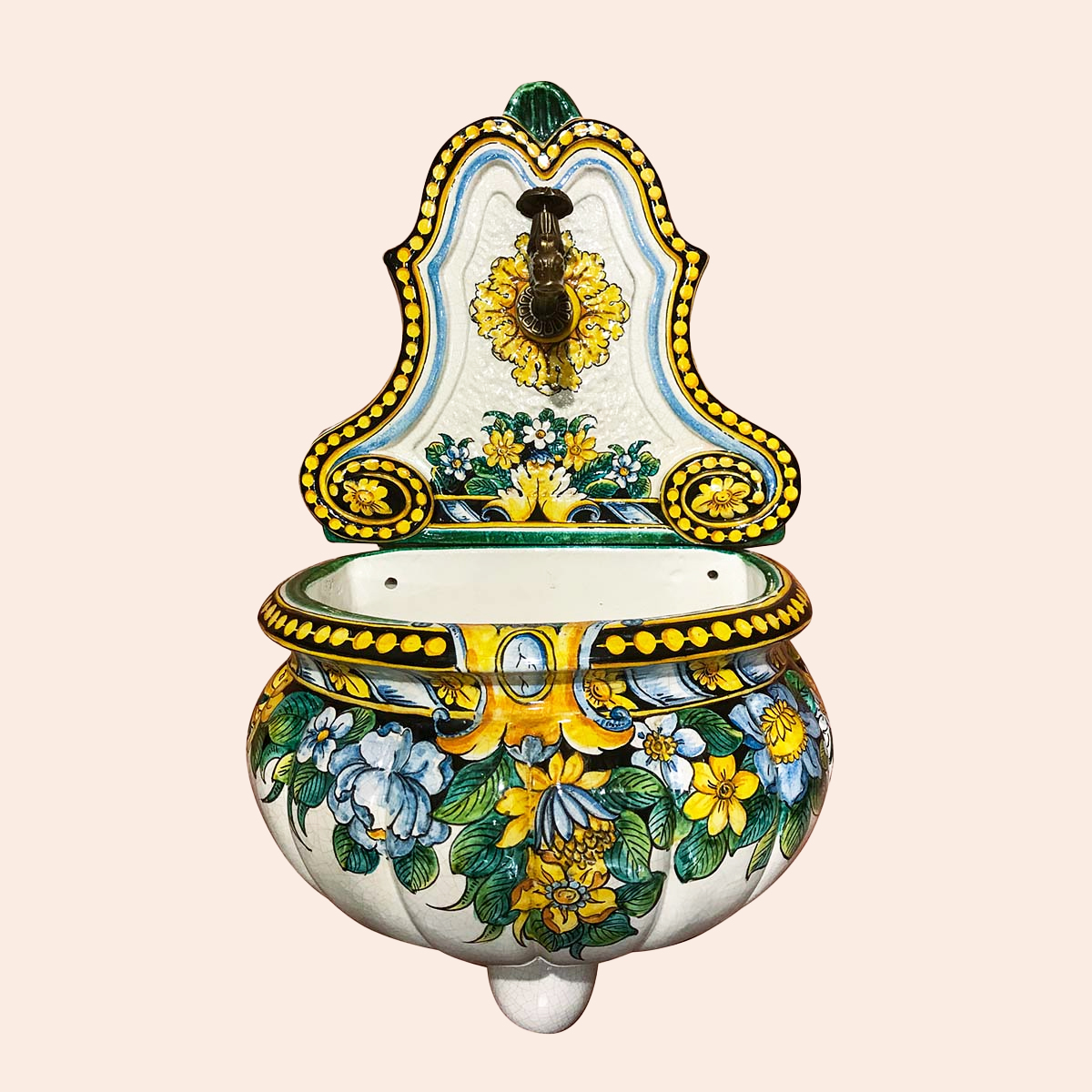 BEAUTIFUL HAND-MADE AND HAND-PAINTED FOUNTAIN, SUITABLE FOR OUTDOOR. MADE IN TUSCANY, ITALY, BY OUR BEST POTTERY ARTISTS. IT IS SOLD AS IN THE PICTURE. NO PLUMBING INCLUDED. MEASURES IN THE FOLLOWING PHOTO.
