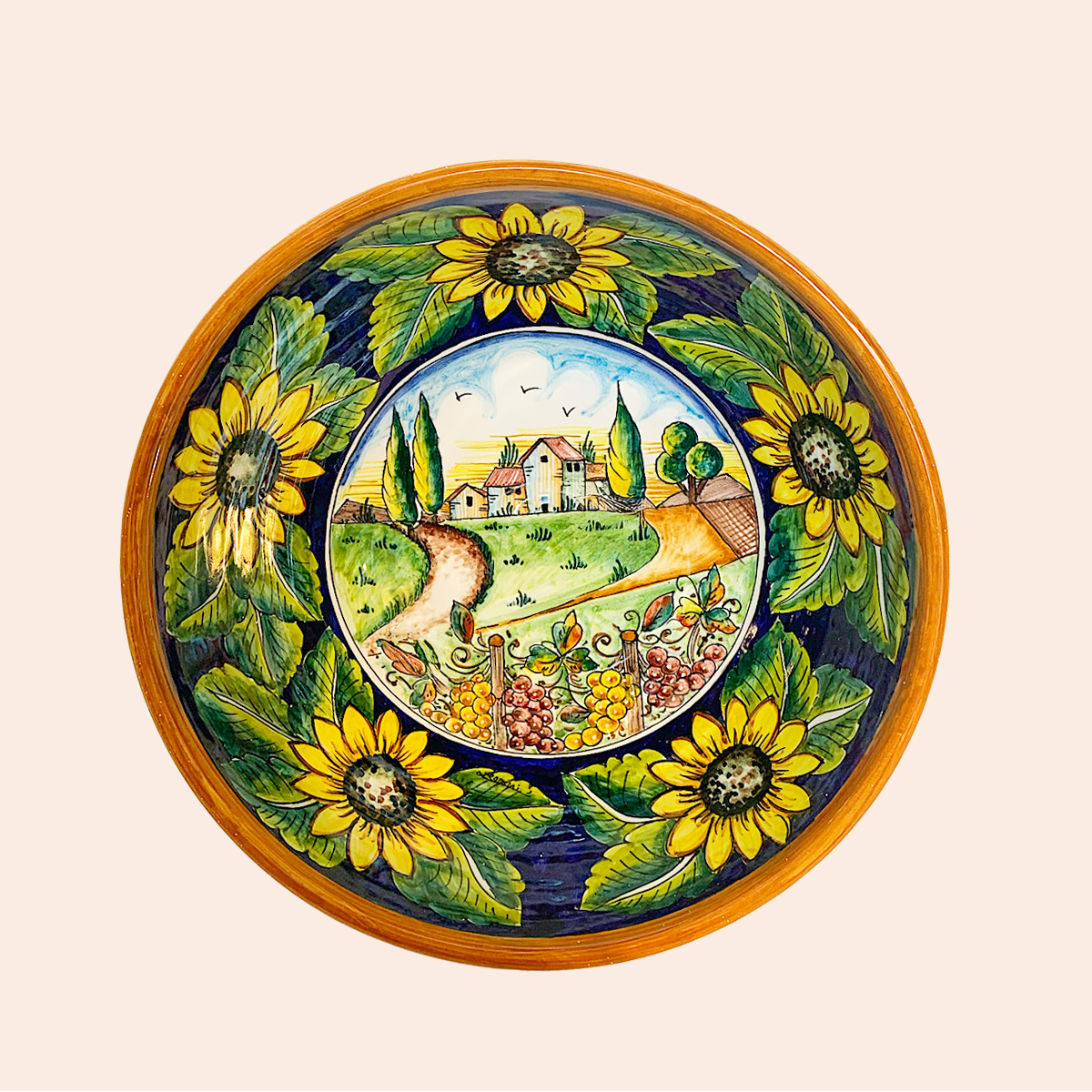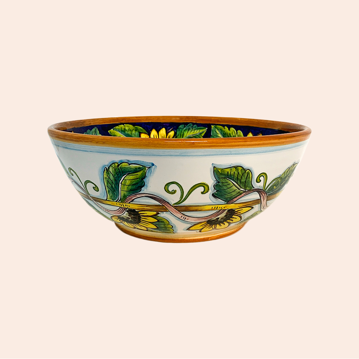 UN ACCESSORIO ESCLUSIVO PER LA VOSTRA TAVOLA PER SERVIRE PASTA O INSALATE IN UNA BELLISSIMA CIOTOLA, FATTA E DIPINTA A MANO NEL NOSTRO LABORATORIO DI CERAMICHE IN TOSCANA. MISURA CM.32 DI DIAMETRO E CM.12 DI ALTEZZA.