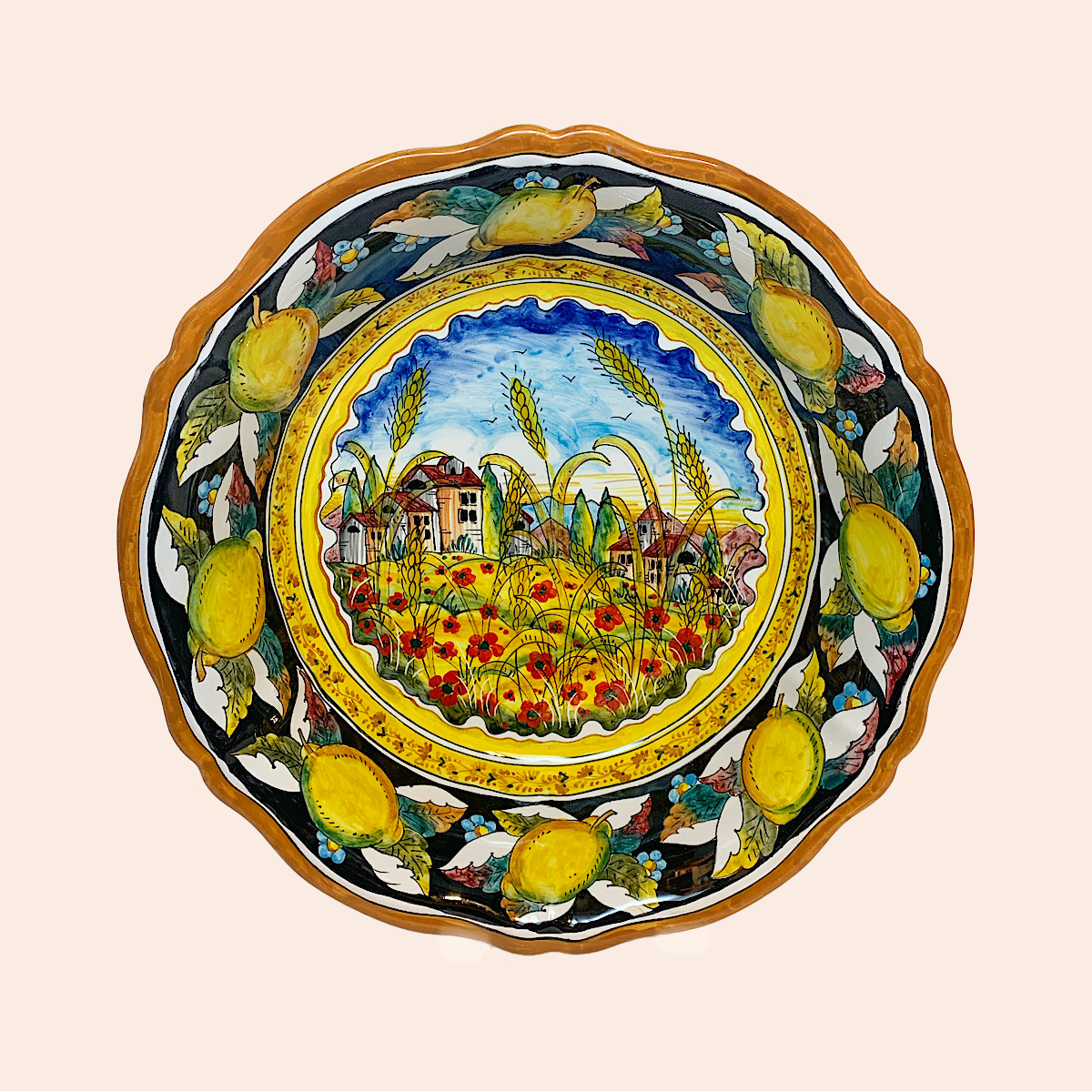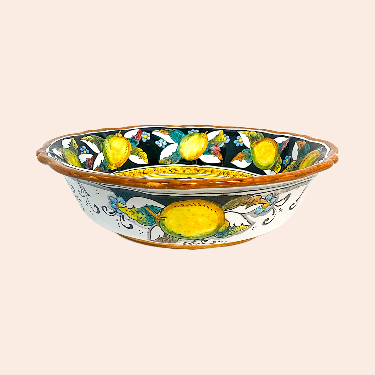 BOLO SMERLATO CAPIENTE DI CM.37 DIAMETRO E CM.10 ALTEZZA. FATTO E DIPINTO A MANO NEL NOSTRO LABORATORIO IN TOSCANA.