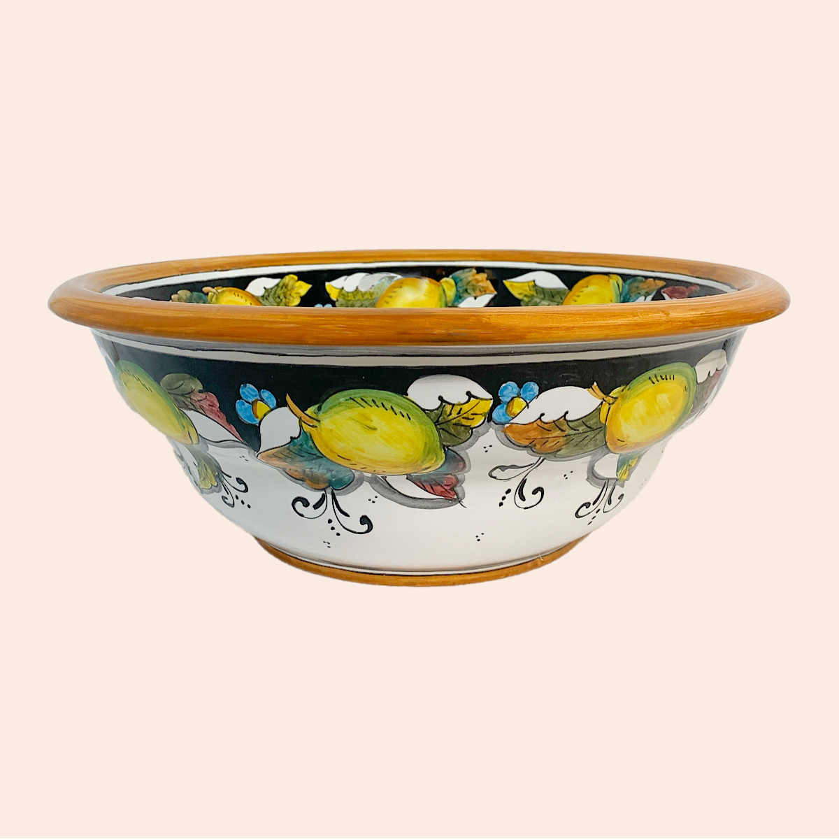 CIOTOLA CHE PUO' ESSERE UTILIZZATA SIA PER SERVIRE PASTA, ZUPPE O INSALATE MA ANCHE FATTA CON LA VECCHIA FORMA DEI CATINI LAVAMANI CHE SI TROVAVANO NELLE CASE DI UNA VOLTA. FATTA E DIPINTA A MANO NEL NOSTRO LABORATORIO DI CERAMICHE IN TOSCANA, MISURA CM.40DX14H.